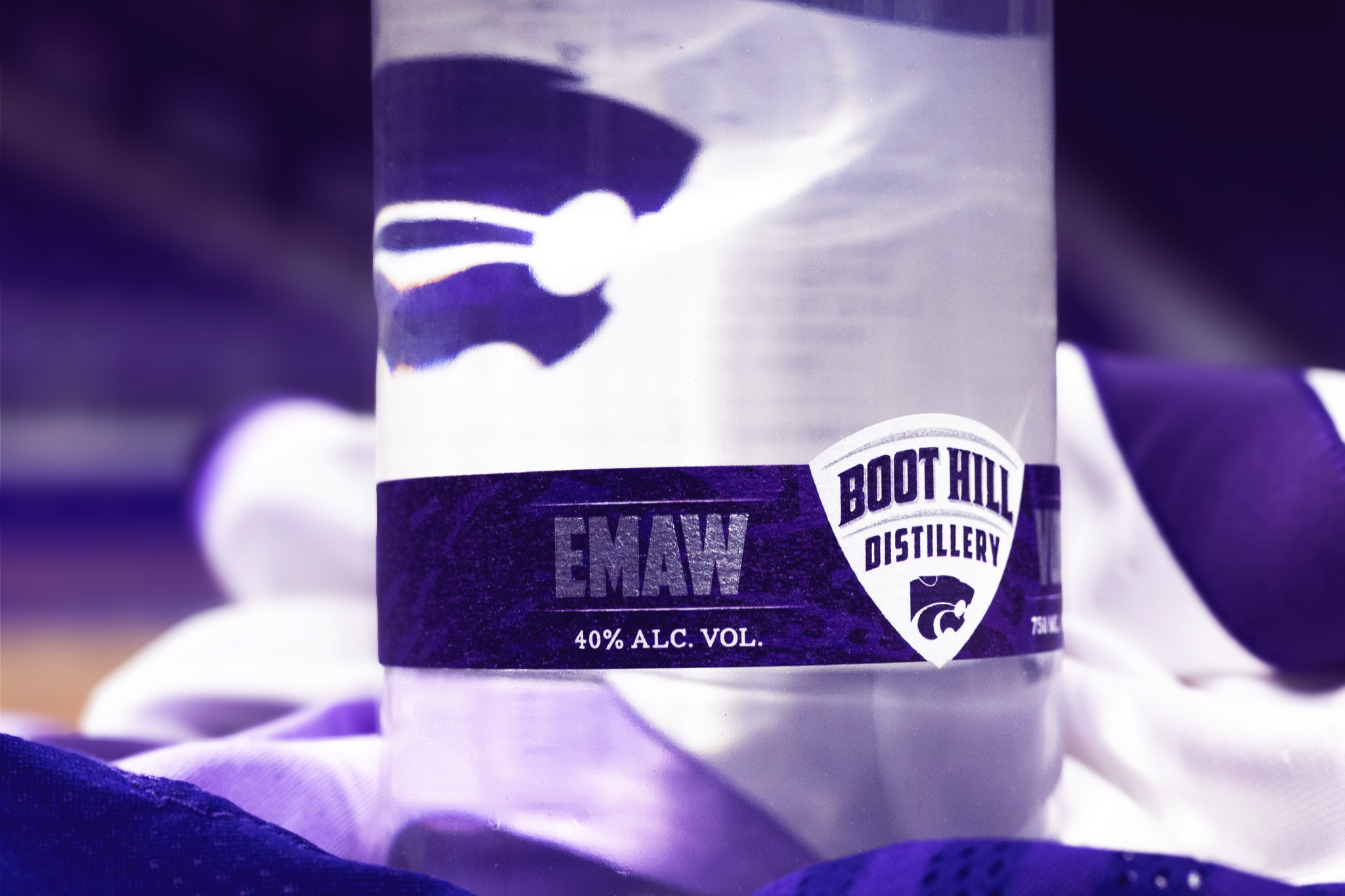 I designed the packaging for EMAW Vodka, inspired by vintage K-State logos to create a timeless feel. A notable feature is the iconic Powercat in reverse print on the back label, allowing it to be visible through the vodka for added depth. The design combines classic university elements with a modern touch, perfectly reflecting Wildcat pride.