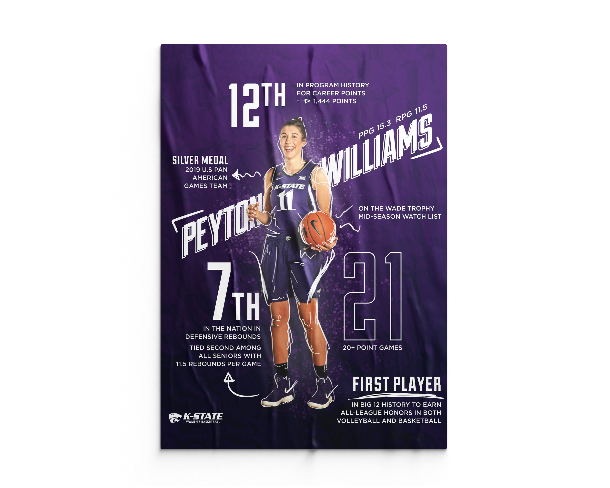 In my role, I created visual designs and marketing materials for K-State Athletics, ensuring a cohesive brand that resonates with students, alumni, and fans. I designed promotional assets, including posters, digital ads, and social media graphics, using bold typography and dynamic layouts to amplify the energy of K-State Athletics and engage the Wildcat community.