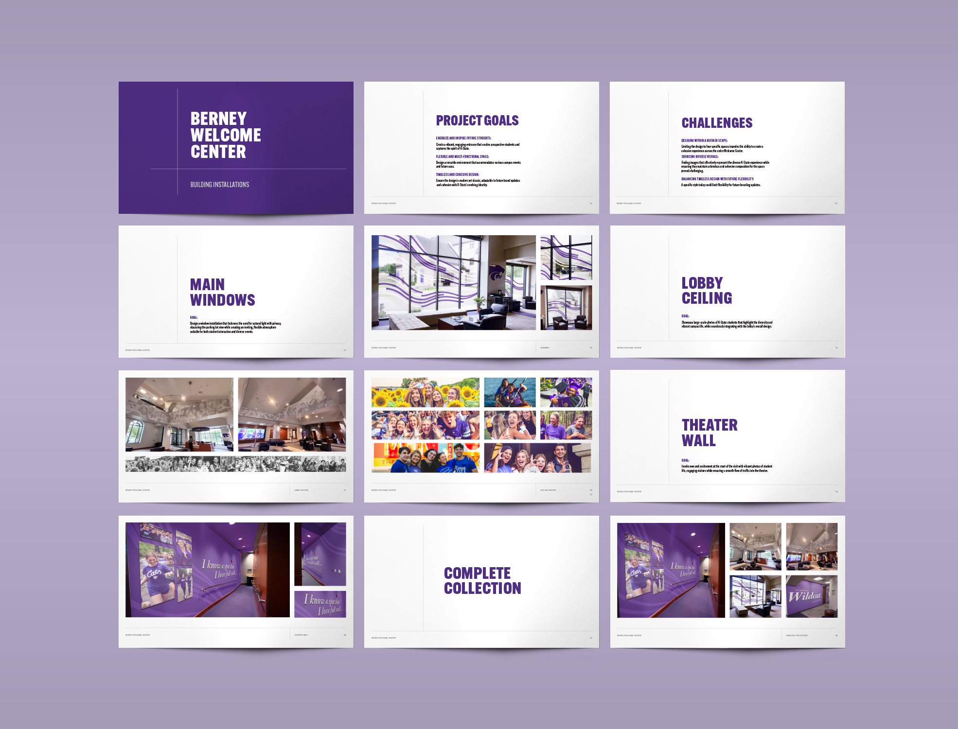 As part of a strategic initiative to enhance the university’s Welcome Center, the first stop for incoming students and visitors, I led the design of an environmental graphics package.